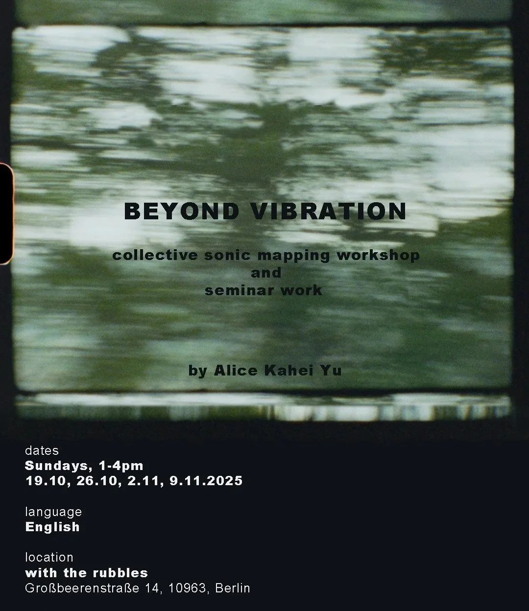 This seminar and workshop invites participants to explore how sound evokes memory, resilience, and displacement. Through collective sonic mapping, we will engage in listening, storytelling, and archiving within the context of a city shaped by migration and exile. Together, we will reflect on how oursonidc landscapes are shaped not only by personal memory but also by political forces such as class, race, gender and state violence.